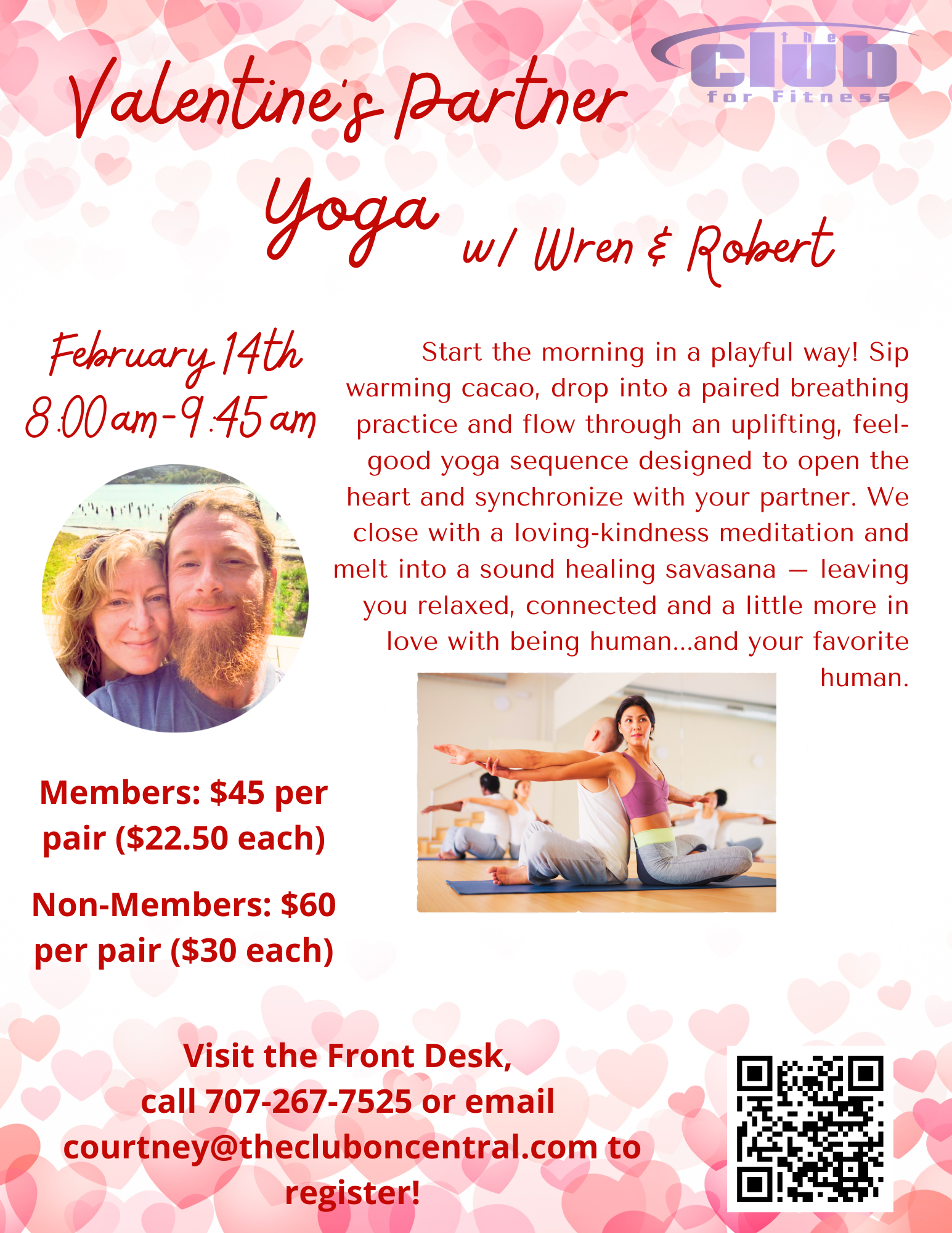 Start your Valentines morning with a sweet and uplifting partner yoga practice! This experience is meant to synchronize your breath and movements with your partner (or favorite human) while deepening your sense of listening and support.
